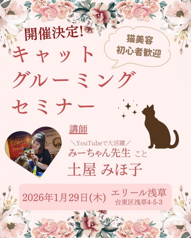 トリマーのためのキャットグルーミングセミナー開催のお知らせ― 1月29日・浅草 エリール ―